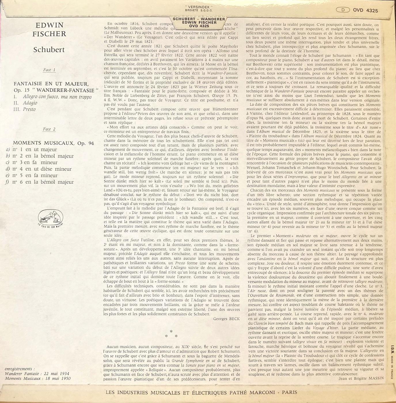 仏VSM エドウィン・フィッシャー/シューベルト さすらい人幻想曲, 楽興の時