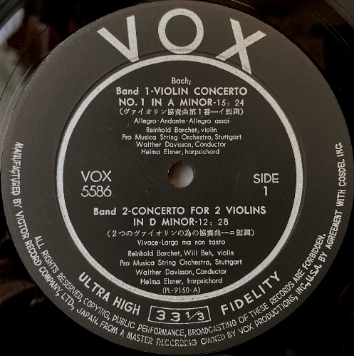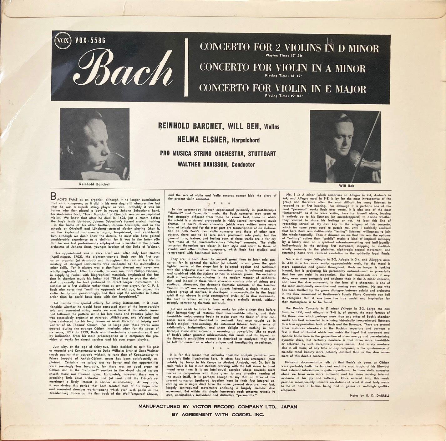 VOX バルヒェット/J.S.バッハ ヴァイオリン協奏曲第1,2番, 2つのヴァイオリンのための協奏曲