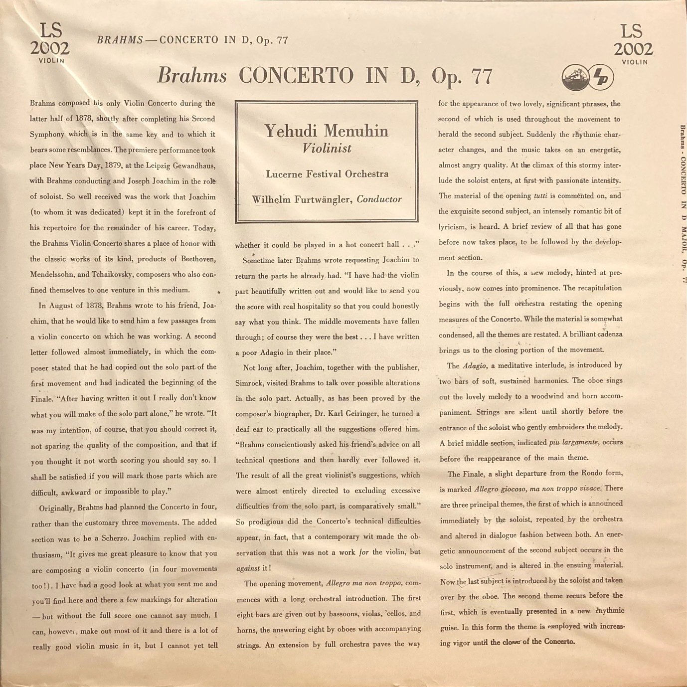 VICTOR メニューイン&フルトヴェングラー/ブラームス ヴァイオリン協奏曲