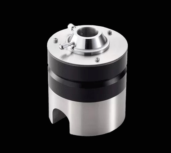 プレーヤーの外側に置いて使用します。 アルミをステンレスで挟む構造で十分な重量があり(3.15kg、最大)、簡単に位置がずれることがありません。フォノケーブルの排出口もあり、ケーブルの取り回しが楽です。