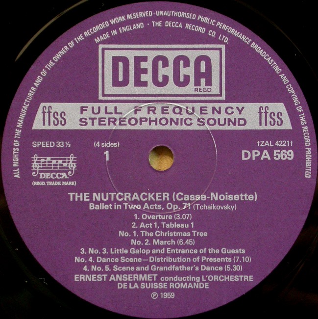 英DECCA アンセルメ/チャイコフスキー バレエ音楽「くるみ割り人形」全曲 2LP